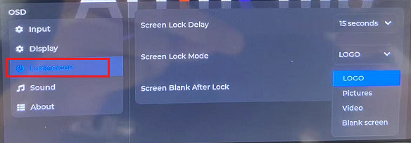 在菜单的 Lockscreen 一栏中,支持对待机模式和待机时间参数进行调整。