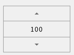 <spin_box x="5%" y="10" w="50%" h="30" text="100"/>